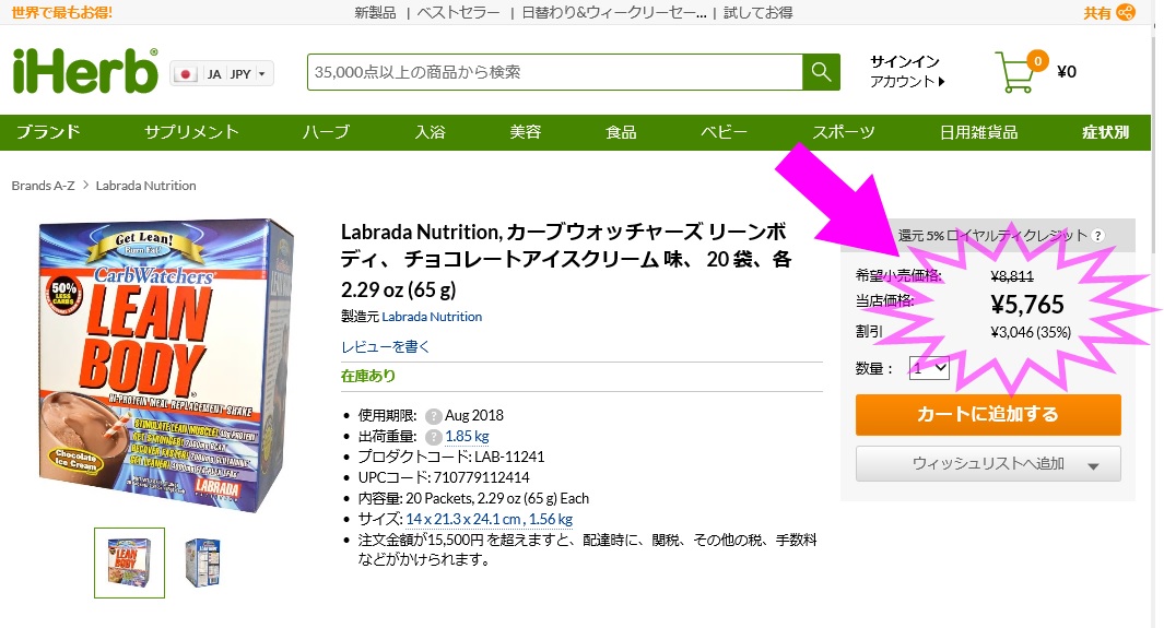 ■iHerb『Carb Watchers LEAN BODY』商品ページ: